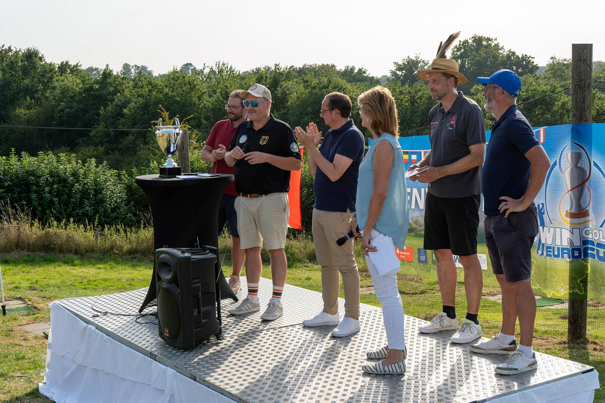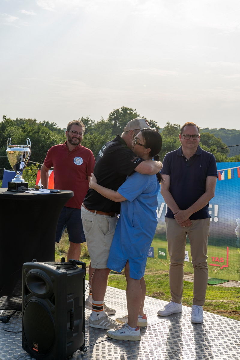 Es wurde hochklassiges Swingolf gespielt und trotz der scheinbaren französischen Übermacht kam es am Samstag, nach dem Ende aller Einzelrunden, zum historischen Moment: Gleichstand in der Nationenwertung zwischen Deutschland und Frankreich. Das hatte es in der knapp 20-jährigen Geschichte des Swingolf Europacups noch nie gegeben. Nach kurzer Beratung auf beiden Seiten kam es zum Stechen: Deutschland schickte seine beste Spielerin ins Rennen, Jacqueline Duhme (22, SGC Westenholz) und für Frankreich trat Hugo Rabeau (21, Masigné) an. Es war der emotionale Höhepunkt des gesamten Turniers als "Jacky" Duhme wenige Minuten später mit einem grandiosen Birdie das Stechen gewann und dafür sorgte, dass Deutschland die Nationenwertung gewann. Auf der anderen Seite flossen die Tränen. Aber am Abend bei der Siegerehrung und dem Galadinner wurde gemeinsam gefeiert, getanzt und auch wieder gelacht.